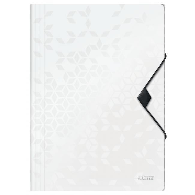 Trojchlopňový obal na dokumenty do formátu A4 z polypropylénu. V dizajne rady WOW v žiarivých farbách. Uzatváranie uchytením na gumičku. Kapacita 150 listov. Väčšie balenie 10 ks. Farba biela.
