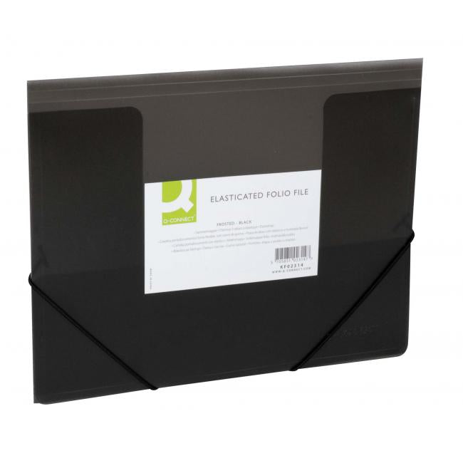 Transparentný plastový obal formátu A4 s tromi chlopňami z polypropylénu s gumičkou. Farba čierna.