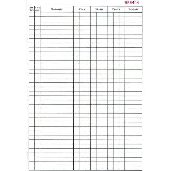 Tlačivo : Pokladničná kniha formát A4, čísovaná,. priepisová, balenie 50 x 2 listy.