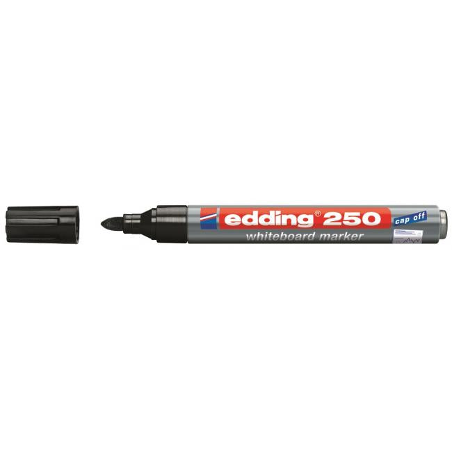 Popisovač na biele tabule, zasucha stierateľný. Plnený pigmentovým atramentom slabého zápachu bez prísady butylacetátu s vlastnosťou `Cap off`, zabraňujúcou vysychaniu atramentu pri otvorenom hrote aj niekoľko dní. Dopĺňateľný atramentom edding BT 30 alebo BTK 25. Hliníkové telo, vymeniteľný hrot. Hrot okrúhly, šírka stopy 1,5 - 3 mm. Dodávaný samostatne. Väčšie balenie 10 ks.