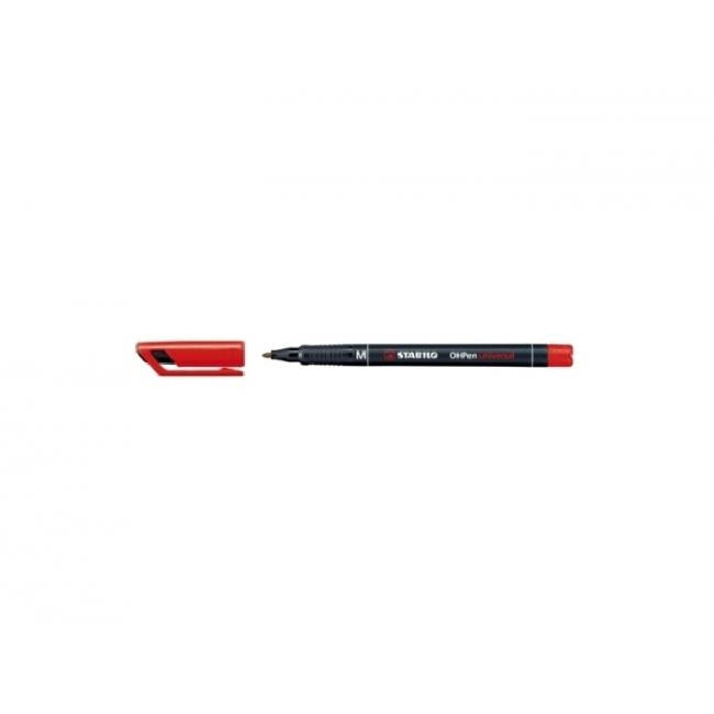 Permanentné popisovače na popisovanie takmer všetkých hladkých povrchov. Nekĺzavá úchytová zóna, praktický klip, bez vrchnáka vydrží až 3 dni. Väčšie balenie 10 ks v jednej farbe. STABILO® OHPen universal Medium (M). Hrot okrúhly, šírka stopy 1 mm. Farba červená.