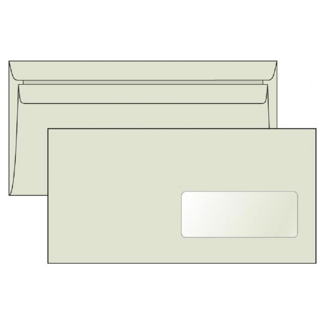 Obálky DL + okienko 110x220 mm vyrobené zo 100 % recyklovaného papiera 80 g LETTURA samolepiace. Balenie obsahuje 1000 ks. Rozmer okienka 42x104mm (zprava 15mm zdola 28mm).
