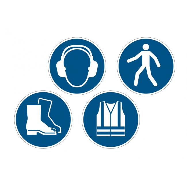 Registrované bezpečnostné označovanie na identifi káciu nebezpečných oblastí, skladovacích priestorov, chodníkov a pod. Odolnosť proti skĺznutiu R9 podľa DIN 51130 v súlade s ISO 7010. Samolepiace značky na bezpečnostné označenie pre vnútorné použitie v skladoch, distribučných centrách, výrobných závodov a i. Odolné voči oderu a ťažkej záťaži. Príkazová značka priemer 430 mm, hrúbka 0,4 mm.