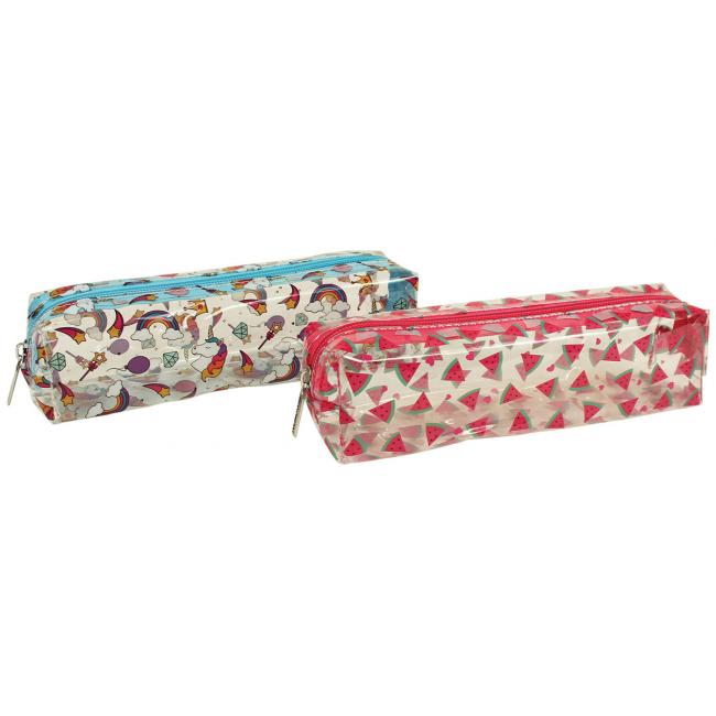 Puzdro na perá DONAU transparentné mix motívov melóny kaktusy