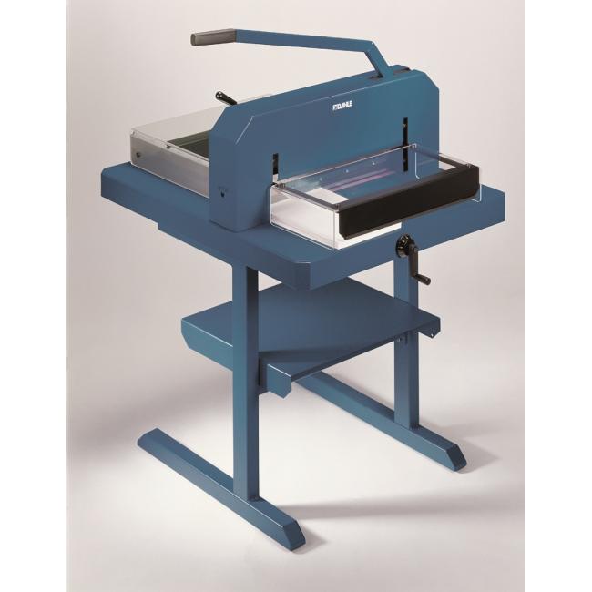 Silná veľkokapacitná rezačka veľkej presnosti, rýchlosti a praktickej funkčnosti, vybavená vysokým stupňom bezpečnosti. Brúsený vrchný a spodný nôž z kvalitnej nožiarskej ocele Solingen, priehľadný bezpečnostný ochranný kryt, zverák papiera, bočný a zadný doraz, ovládaný kľukou. Minimálny rez 40 mm. Mierka v cm/inch a DIN formátoch. Voliteľné príslušenstvo stojan.