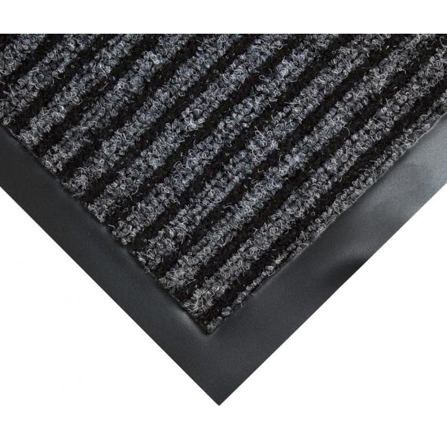 Vstupná rohož s rebrovaným povrchom, ktorý je určený pre náročné vstupné zóny. Vytvára „kanáliky“ na zachytenie špiny a nečistôt a vysušuje vlhkosť z podrážok, čím zvyšuje bezpečnosť chôdze na hladkej podlahe. Vhodná do vstupných priestorov, hál a chodieb. Vlas zo 100% polypropylénu, spodná strana rohože z PVC s ochranou proti znečisteniu a pošmyknutiu. Výška 9 mm. Trieda horľavosti podľa európskej normy EN 13501-1. Rozmery 90 x 150 cm. Farba sivá.