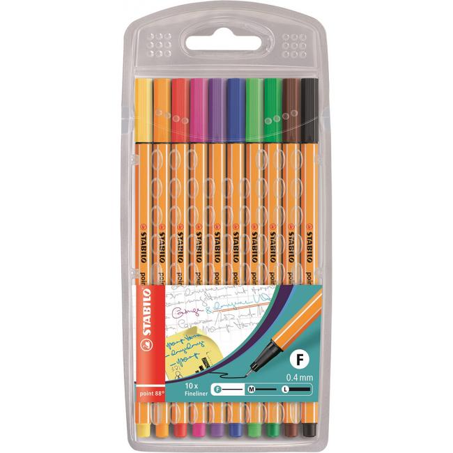 Veľmi obľúbený jednorazový liner na atramentovej báze. Vhodný na písanie a rysovanie podľa šablóny alebo pravítka. Kovové puzdro hrotu zaisťuje dlhú životnosť. Šírka stopy 0,4 mm. Sada 10 farieb.
