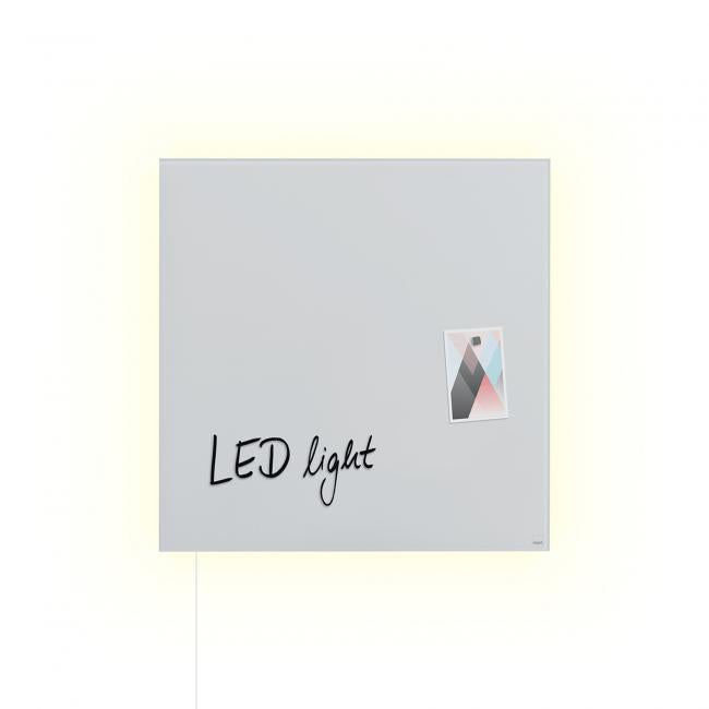 Exkluzívne magnetické tabule z tepelne tvrdeného bezpečnostného skla (EN 12150-1) hrúbky 15 mm so zadným skrytým LED podsvietením s teplým bielym svetlom vo všetkých rohoch. Svetelný zdroj je pevne pripevnený k hliníkovému profi lu a nedá sa vymeniť. Priemerná doba svietenia je 25 0000 hodín. Bezpečnosť tabúľ je schválená TÜV a GS, montážne kovania schválené TÜV zabezpečujú bezpečné uchytenie na stenu. Tabule sú popisovateľné kriedovými popisovačmi Sigel