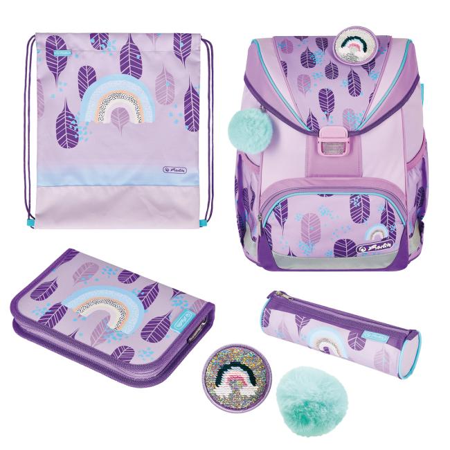 Školská taška UltraLight s ergonomicky tvarovanou výstužou chrbta, s nastaviteľnými ramennými popruhmi, hrudným popruhom, hlavným vreckom s priestorom na knihy, dvomi bočnými vreckami, predným vreckom so zipsom a zapínaním Click lock. Reflexné pruhy, dva odznaky na suchý zips. Hmotnosť 750 g, objem 15 l, rozmery 36 x 28 x 21 cm. Výbava: 16-dielny peračník, guľaté puzdro a vrecko na prezuvky