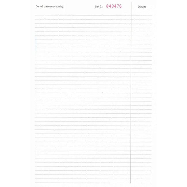 Stavebné tlačivo. Stavebný denník, číslovaný, A4, kniha, 158 listov.