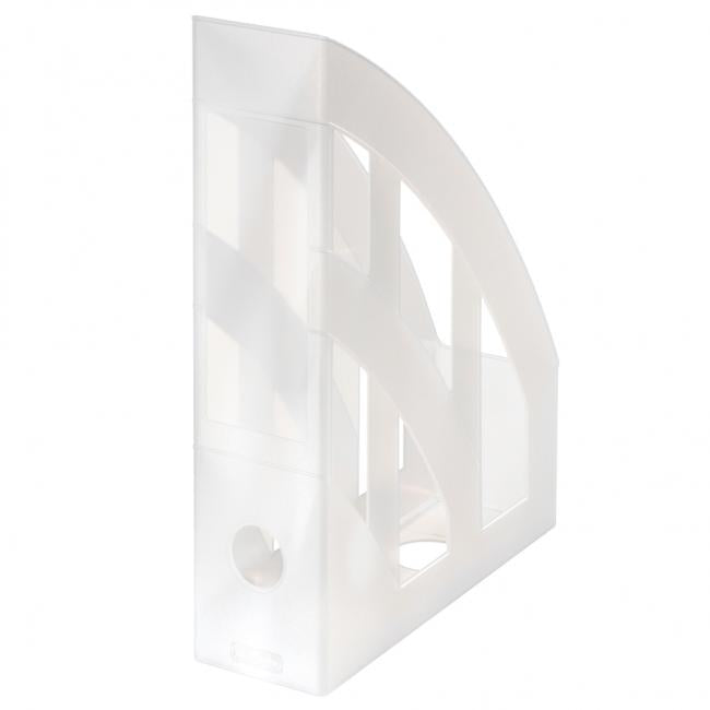 Plastový stojan na časopisy vhodný na ukladanie časopisov, záznamov a katalógov. Miesto na etiketu na chrbte. U priehľadných je materiál Polystyrol, plast odolný voči nárazom. Pre formát DIN A4 až C4. Väčšie balenie 4 ks. Farba priehľadná biela.
