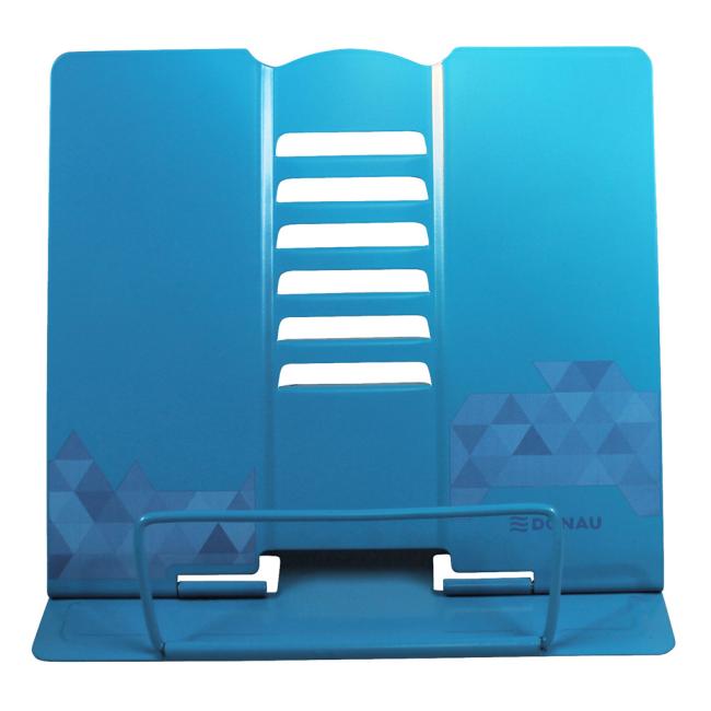 Kvalitný stojan na čítanie z lakovaného kovu, s potlačou zvieratiek, vhodný aj pre ťažké knihy a tablety, s protišmykovými gombíkmi, nastaviteľná výška/uhol sklonu v 5 stupňoch, pri nepoužívaní sa zloží na plocho pre úsporu miesta pri preprave a úložný priestor, s uzamykacou konzolou na otvorenú stranu, všestranný v škole, kancelárii, kuchyni alebo ako stojan na noty, rozmer základne 21x16,5cm, výška 15,7cm. Farba modrá.