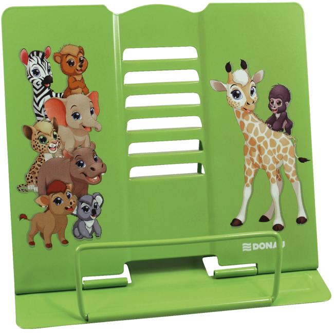 Stojan na čítanie kníh kovový, motív Zvieratká, zelený.