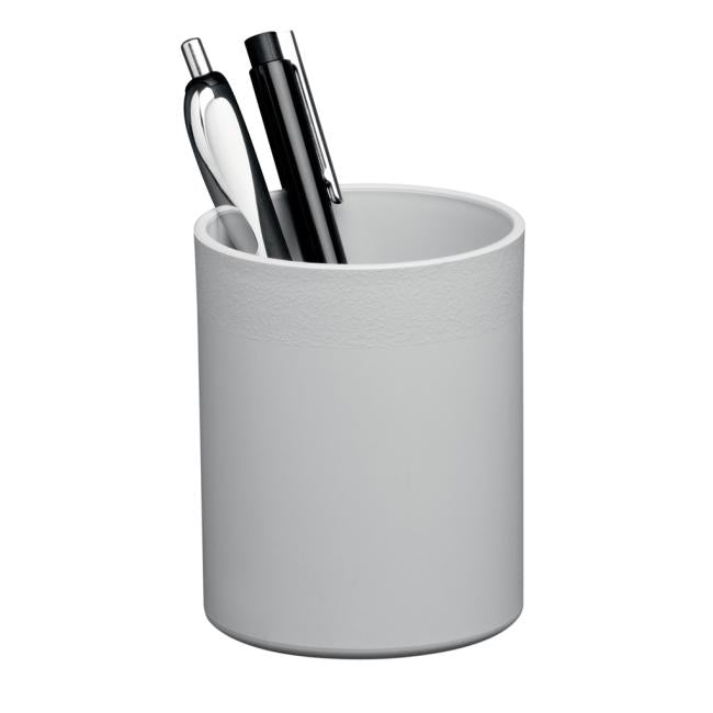 Praktický, odolný stojan na perá. Vyrobený z recyklovaných plastov v kvalite Blue Angel. Vhodný na perá, nožnice, zvýrazňovače atď. Rozmery: Ø 80 mm, výška 100 mm. Farba sivá.