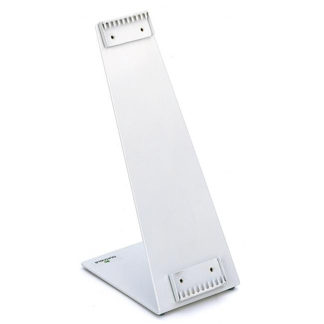Extrémne pevný odľahčený kovový stojan v tvare L. Plastový poťah odolný voči oderu. Dodávaný prázdny s kapacitou na 10 panelov. Farba sivá.