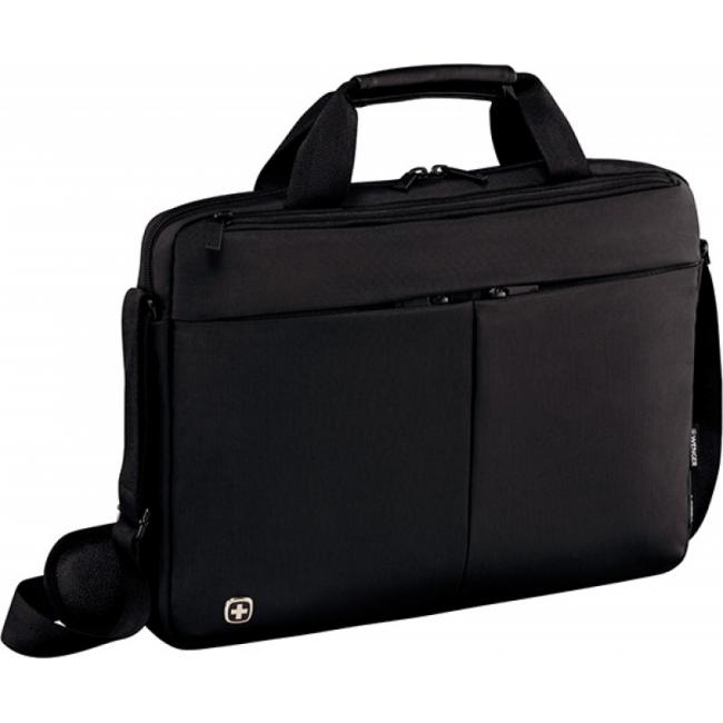 Taška na notebook s vreckom iPad Pocket na uloženie tabletu alebo čítačky, vybaveným podšívkou proti poškriabaniu displeja. Organizér uchováva šnúry, nabíjačky a vizitky v poriadku a prístupné vďaka systému vreciek. Predné vrecká na zips, nastaviteľný komfortne vystužený ramenný popruh, systém pre uchytenie na kolieskovú batožinu s výsuvným držadlom. Materiál polyester, PVC a nylon, farba čierna. Rozmery (š × v × h) 390 × 260 × 80 mm.