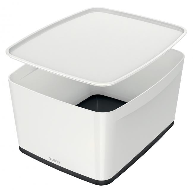 Úložný box s vekom Leitz MyBox, veľkosť L biela/čierna