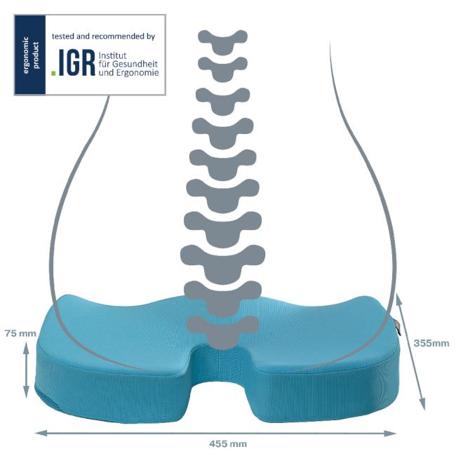 Vankúš je nvrhnutý tak, aby podporoval zdravé držanie tela, zlepšoval krvný obeh a zmierňoval tlak na chrbticu, čím pomáha výrazne znížiť nepohodlie, únavu a stuhnutosť. Tento štýlový ortopedický vankúš na sedenie s minimalistickým dizajnom a matnými farbami zlepší zdravie a pohodu tým, že bez námahy vytvorí dokonalé aktívne (pracovné) prostredie pre každého. Ručne prateľný látkový poťah. Farba modrá.