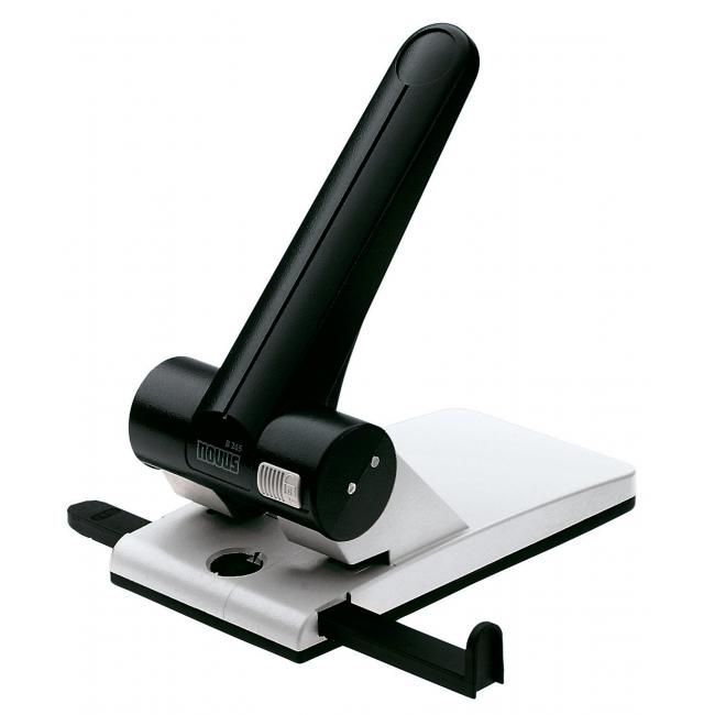 Veľkokapacitná dierovačka s posuvným pravítkom a aretáciou horného dielu pre ľahké uloženie a pákovým prevodom pre optimálny dierovací výkon. Rozpätie dier 8 cm. Hmotnosť 1250 g. Záruka 10 rokov.