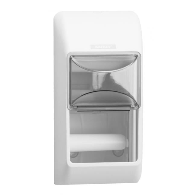 Pevný a spoľahlivý praktický uzamykateľný zásobník na bežné rolky toaletného papiera do priemeru 13,5 cm. Je určený na 2 kotúče papiera, a preto sa nemôže stať, že zostane bez papiera. Nevhodný na toaletný papier Economy, Harmony Maxima, KATRIN Basic 12540 z dôvodu väčšieho priemeru rolky. Vyrobený z ABS plastu. Jednoduchá montáž a dopĺňanie, spotrebovanie rolky do posledného útržku. Farba biela. Rozmery š × v × h : 145 × 300 × 145 mm.