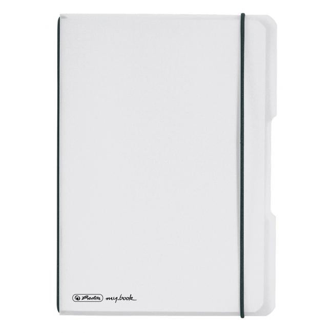 Zošit my.book flex - A5/40 listov, štvorčekový, PP, 80g/m2, zaoblené rohy, priehľadný s čiernou gumičkou na zatváranie.